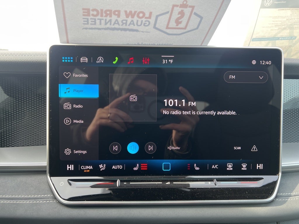 - MIB4 Composition Media Touchscreen w/AM/FM Radio -inc: WMA/MP3/FLAC player w/USB, 12.9" touchscreen multi-function center display w/backlit sliders, voice control, 6 speakers + center speaker (7 speakers total) sound system, capability for in-vehicle 4G LTE enabled Wi-Fi (cellular data plan required; includes limited trial), capability for connected vehicle services (capabilities for services vary; requires enrollment or subscription), Bluetooth® connectivity (for compatible devices), SiriusXM w/360L (w/3-month free trial subscription; 360L services require acceptance of Car-Net terms), App-Connect smartphone integration (w/Apple CarPlay, Android Auto and MirrorLink) via USB, wireless App-Connect smartphone integration (for compatible devices) w/multi-phone pairing capability, 45W fast charging (for compatible mobile phones and accessories) via USB in both rows and Qi wireless inductive charger, cooled, up to 15W (for compatible mobile phones and accessories) All connected vehicle services are subject to terms and limitations. Some services require a paid subscription. See dealer or vw.com/connected for important details.