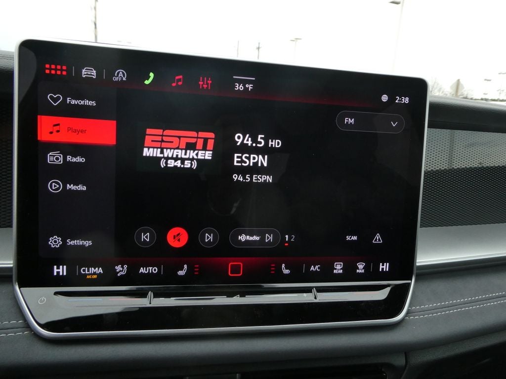 - MIB4 Composition Media Touchscreen w/AM/FM Radio -inc: WMA/MP3/FLAC player w/USB, 12.9" touchscreen multi-function center display w/backlit sliders, voice control, 6 speakers + center speaker (7 speakers total) sound system, capability for in-vehicle 4G LTE enabled Wi-Fi (cellular data plan required; includes limited trial), capability for connected vehicle services (capabilities for services vary; requires enrollment or subscription), Bluetooth® connectivity (for compatible devices), SiriusXM w/360L (w/3-month free trial subscription; 360L services require acceptance of Car-Net terms), App-Connect smartphone integration (w/Apple CarPlay, Android Auto and MirrorLink) via USB, wireless App-Connect smartphone integration (for compatible devices) w/multi-phone pairing capability, 45W fast charging (for compatible mobile phones and accessories) via USB in both rows and Qi wireless inductive charger, cooled, up to 15W (for compatible mobile phones and accessories) All connected vehicle services are subject to terms and limitations. Some services require a paid subscription. See dealer or vw.com/connected for important details.