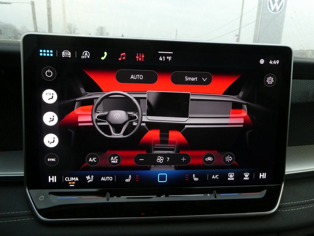 - MIB4 Composition Media Touchscreen w/AM/FM Radio -inc: WMA/MP3/FLAC player w/USB, 12.9" touchscreen multi-function center display w/backlit sliders, voice control, 6 speakers + center speaker (7 speakers total) sound system, capability for in-vehicle 4G LTE enabled Wi-Fi (cellular data plan required; includes limited trial), capability for connected vehicle services (capabilities for services vary; requires enrollment or subscription), Bluetooth® connectivity (for compatible devices), SiriusXM w/360L (w/3-month free trial subscription; 360L services require acceptance of Car-Net terms), App-Connect smartphone integration (w/Apple CarPlay, Android Auto and MirrorLink) via USB, wireless App-Connect smartphone integration (for compatible devices) w/multi-phone pairing capability, 45W fast charging (for compatible mobile phones and accessories) via USB in both rows and Qi wireless inductive charger, cooled, up to 15W (for compatible mobile phones and accessories) All connected vehicle services are subject to terms and limitations. Some services require a paid subscription. See dealer or vw.com/connected for important details.